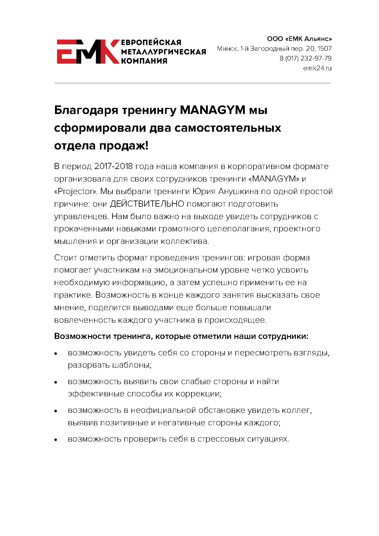 Читать подробнееManagym ™ - это спортивный зал, где наша команда готовит управленцев к жесткой и продуктивной работе на посту руководителя.